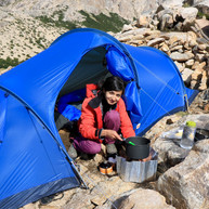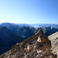 Von der Bergstation aus starteten wir dann dem Kamm entlang zu einer rund vierstündigen Wanderung zum Refugio Emilio Frey. Zwar galt es dabei keine grosse Höhendifferenz zu überwinden, durch die riesigen Felsformationen mussten wir aber über weite Strecken eher bouldern als wandern. Die Aussicht vom Gebirgskamm über den Lago Gutierrez, die Flusstäler und schöne Berge war so beeindruckend, dass wir wieder einmal etwas die Zeit vergasen. Wir konnten gerade noch mit der Dämmerung den steilen Abstieg runter zur Laguna Schmoll bewerkstelligen. Den weiteren Weg entlang der Laguna Toncek musste wir dann im Dunkeln bewältigen. Wir waren überrascht über die vielen Zelte im Refugio Emilio Frey, da wir während der Wanderung stets alleine waren. Rund um die Steinhütte befanden sich in steilem und steinigen Gelände wohl ca. 50 Zeltplätze. Mit Mühe fanden wir einen, der knapp genügend gross war für unser Zelt. Wie wir später herausfanden, war das Camp so gut besucht, weil eine Gebirgstruppe der argentinischen Armee dort nächtigte und am nächsten Tag Mehrseillängen kletterte. Die Gegend um das Refugio Emilio Frey gilt als eines der besten Klettergebiete in Argentinien. Das wussten wir natürlich schon vorher und wären nur zu gerne selber geklettert, aber in ganz Bariloche fanden wir keinen Laden, der uns die Ausrüstung vermieten konnte. In Argentinien wird Klettern gern als organisierte Tour angeboten, ohne eigene Ausrüstung ist es oft schwieriger.