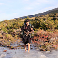 Nachdem wir uns den obligatorischen Film zur Rundwanderung in der Ranger-Station angeschaut hatten, in dem wir zehn Minuten lang auf alle möglichen Gefahren von Steinschlag, über unberechenbare Flussüberquerungen mittels Zip-Line, unmarkierte bzw. inexistente Pfade mit der Gefahr, die Orientierung zu verlieren, Gletscherspalten und schliesslich Rutsch- und Todesgefahr hingewiesen wurden, waren wir endlich bereit loszumarschieren. Zu diesem Zeitpunkt war es schon nach zwei Uhr nachmittags, aber egal, laut den Beschreibungen im Internet und dem kurzen Horrorfilm war ja der erste Tag auch der einfachste von den insgesamt vier Tagen. Zudem waren die Tage im patagonischen Sommer lang, da sollten wir die 15 Kilometerchen auf mittelschwerem Terrain schon meistern. Bei tiefblauem Himmel brachen wir auf, anfangs mit einer traumhaften Aussicht auf den schneebedeckten Cerro Fitz Roy. Tatsächlich war die Wanderung sehr angenehm, bis wir zu einem knietiefen Fluss, dem Río Túnel, kamen. Dieser war mit Schuhen nicht zu passieren. Noch einmal die Karte genau studieren, hatten wir eine Abzweigung verpasst? Einen eindeutigen Weg gab es nämlich nicht. Das war ganz anders als noch auf den Trampelpfaden beim O-Circuit im Torres del Paine Gebiet. Wir liefen dem Flusslauf hoch und runter und erkannten, dass der einzige Weg auf die andere Seite durch den Fluss führen musste. Sollte kein Problem sein, es war ja warm und eine kleine Abkühlung würde den Füssen guttun. Also Schuhe ausziehen und rüber. Doch dann der Schock: Nach zwei Schritten barfuss in diesem eiskalten Gletscherfluss fühlte sich das Wasser an den Füssen wie Nadelstiche an. Durch so kaltes Wasser mussten wir noch nie gehen in unserem Leben! Irgendwie haben wir es dann aber auf die andere Seite geschafft, wobei Gonca ob der Kälte ein wenig weinen musste :-). Der Erfolg machte uns ganz übermütig und die Euphorie hielt an, bis wir ca. zehn Minuten später an einem zweiten Arm des Río Túnel ankamen, der wieder nur barfuss zu passieren war. Zu diesem Zeitpunkt war die Sonne schon hinter dem Berg verschwunden und trotz guter Topo-Karte war uns nicht ganz klar, wie weit weg sich der vermeintliche Campingplatz noch befand, bzw. wie viele Flüsse wir bis dahin noch zu überqueren hatten. Beim zweiten Mal waren wir schon tapferer und zögerten weniger lang. Kurz vor der Dämmerung erreichten wir dann das Camp im schützenden Wald – Wild Camping versteht sich, ohne Annehmlichkeiten wie warmer Dusche oder fliessend Wasser. Von anderen Wanderern erfuhren wir, dass sie genauso zu kämpfen hatten mit dem kalten Wasser. Dieses war aktuell besonders hoch und konnte daher nicht wie üblich mit Schuhen passiert werden. Wir verzehrten unser Nachtessen und gönnten uns als Dessert eine Handvoll selbstgepflückter Calafate Beeren aus der Umgebung.