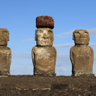 All of the over 1'000 moai, which are still ubiquitous on the island, were created presumably from around 1100 to 1650 in Rano Raraku, the volcanic quarry of the island. They were created in a way that their front site was finished first while they were still attached to the volcanic rock with their back. Only then, keels were used to separate the statues from the surrounding rock. The creation of a moai took obviously around two years. Today the quarry is one of the main attractions of the island as it contains almost 400 unfinished or damaged moai of different sizes. In general earlier moai were smaller and carved in less detail. The Rapa Nui continuously perfected their skills which led to increasingly larger statues and eventually gigantism. The largest moai with a size of 21 metres and a weight of approximately 200 tons remained unfinished and is seen today at this quarry. When a moai was damaged in the process of its creation or transportation, it was left where it was as the Rapa Nui believed that damaged moai loose their 'Mana’, their power. Undamaged and finished moai were transported to various places across the island and put on so-called ahu, ceremonial platforms, to represent the islanders' power. The ahu often contained mortal remains of the clans' ancestors. Most ahu are close to the coastline with the moai originally facing the villages in order to protect the houses and its' inhabitants. The houses were built in canoe form and many of their layout stones are still visible on the island today.